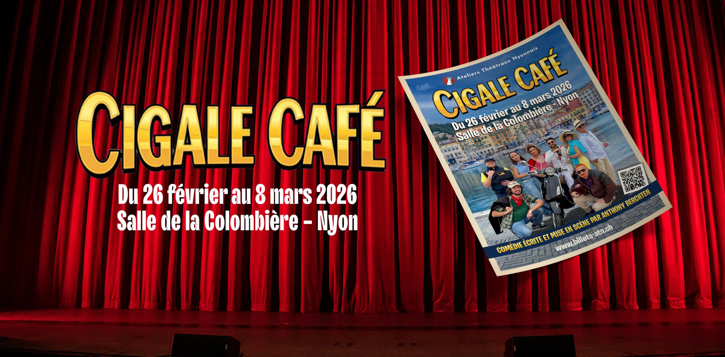 Du 26 février au 8 mars 2026, les Ateliers Théâtraux Nyonnais présentent Cigale Café, une comédie hilarante écrite et mise en scène par Anthony Berchten. La pièce rendra un vibrant hommage à Brigitte Bardot, disparue fin 2025.
